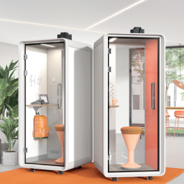 • Cabinas dobles o para reuniones: espacios para 2 a 4 personas, pensados para reuniones privadas o colaborativas en entornos de trabajo.