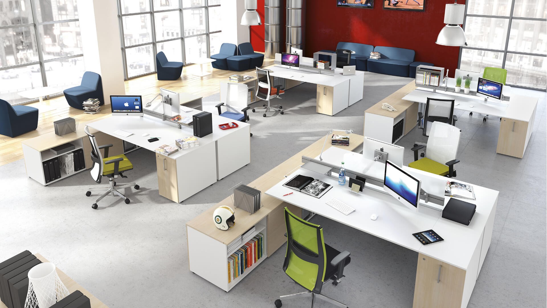 5th ELEMENTO: Tres formas de interpretar el ambiente de las oficinas y de respetar la naturaleza mediante los sistemas de oficinas Bench, Desking, system. En la actualidad existen varias formas de trabajar. Algunos multiplican los recursos, otros se reúnen para compartir. La línea de muebles 5th Elemento responden a todas estas exigencias de manera completa y optima con el fin de respetar el medio ambiente generando el mejor ambiente de trabajo.