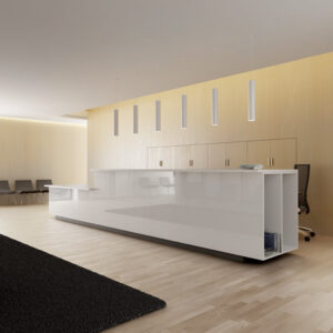 El conjunto diseñado para ubicar en las recepciones debe ser funcional y estéticamente agradable, proporcionando un espacio para la interacción con los visitantes y contar con la privacidad adecuada para realizar las tareas administrativas.