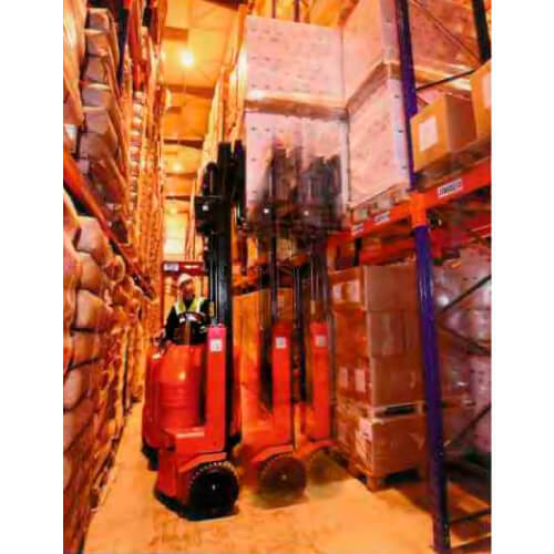 FLEXI elimina el espacio requerido por una retráctil o una carretilla contrap esada paraentrar dentro de la estantería, permitiendo pasillos más estrechos y así más superficie útil dentro del mismo espacio.